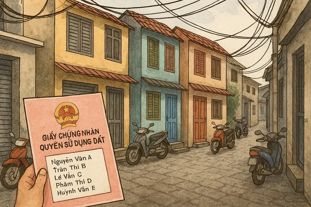 Đây là rủi ro “khó lường” nhất. Sân chung, lối đi chung, tường rào, chi phí sửa chữa… đều phải mọi người cùng góp ý. Mình từng thấy có trường hợp một đồng sở hữu tự ý cho thuê phần sân chung hoặc từ chối đóng tiền sửa ống nước, dẫn đến kiện tụng kéo dài hàng năm. Ở Tân Phú, nhiều khu nhà cũ kiểu này càng dễ xảy ra vì chủ cũ thường là anh em ruột thịt đã chia tài sản không rõ ràng.