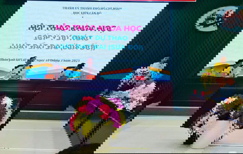 Ngày 10-3, Học viện Cán bộ Thành phố Hồ Chí Minh tổ chức Hội thảo khoa học Góp ý dự thảo Luật Đất đai (sửa đổi) với sự tham gia của đông đảo các đại biểu là các chuyên gia trong lĩnh vực đất đai.